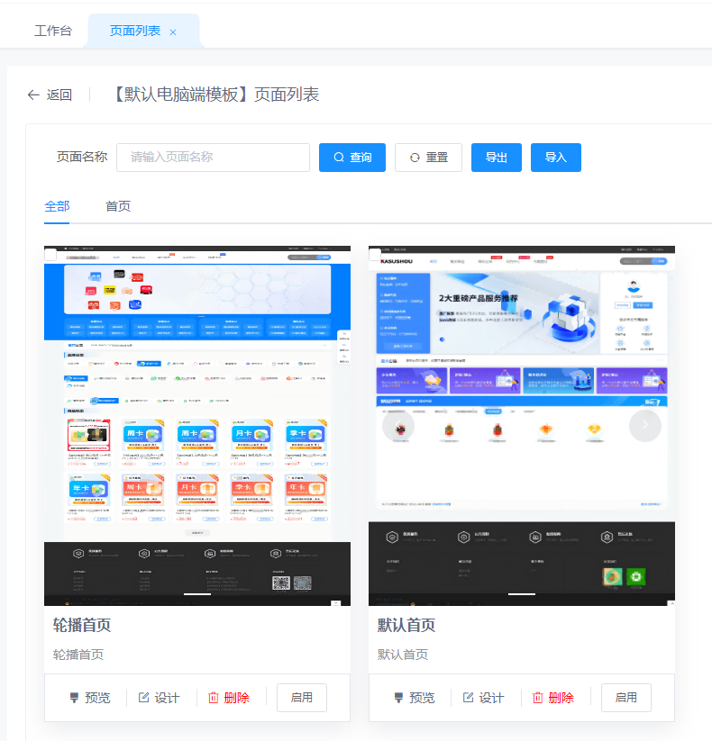 2.进入页面列表选择适合自己的页面模板 并点击设计