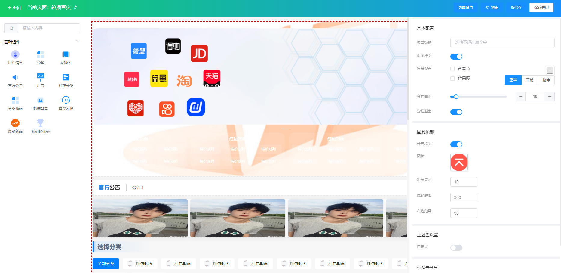 3.进入模块设计页面后 你可以选择自己需要的模块添加 不喜欢的模块删除即可
