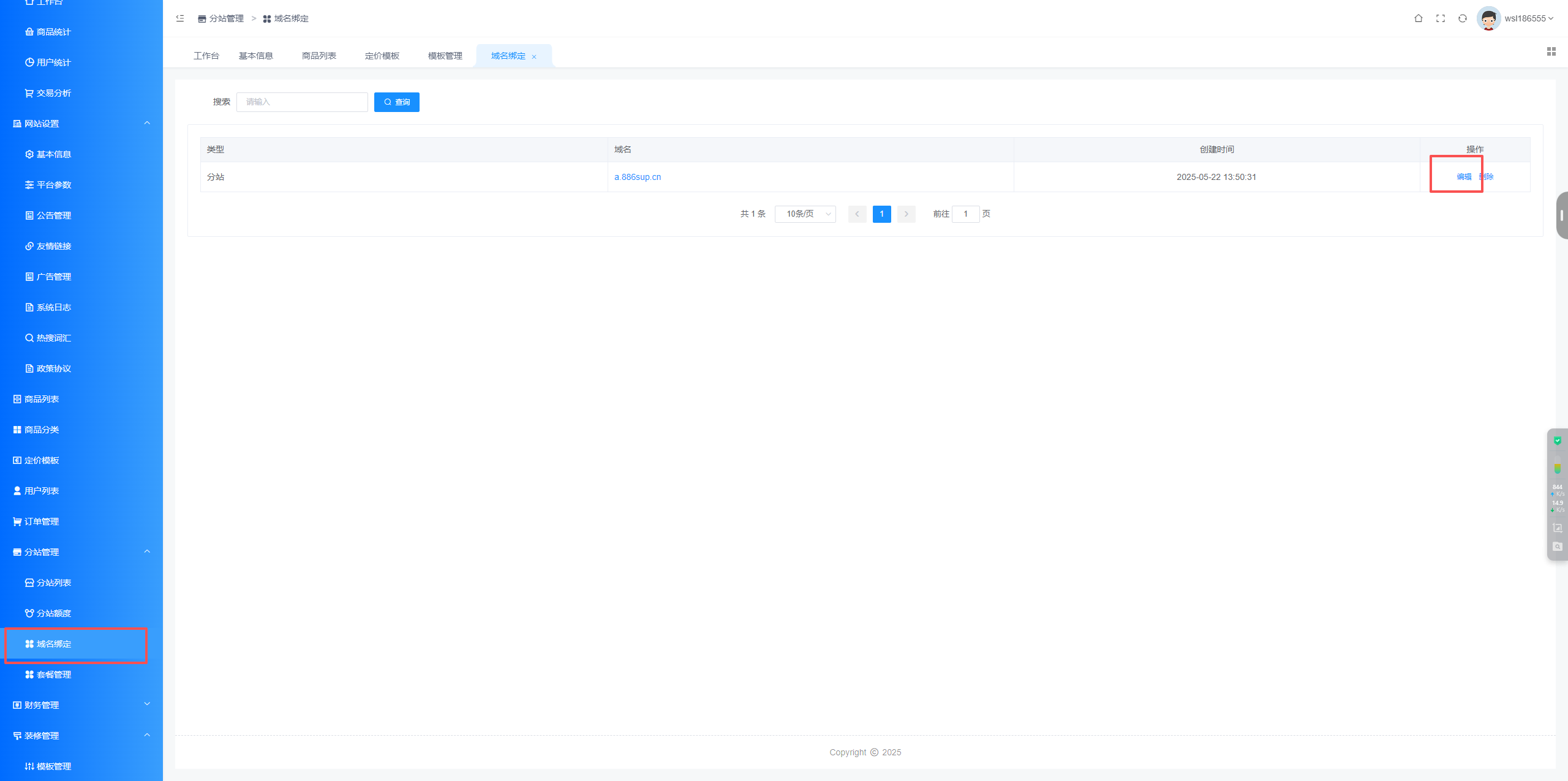 4.设计好之后 我们点击仅保存 然后回到分站后台域名绑定设置点击编辑
